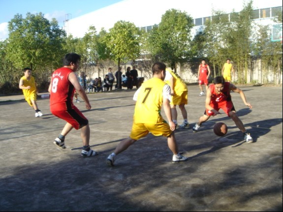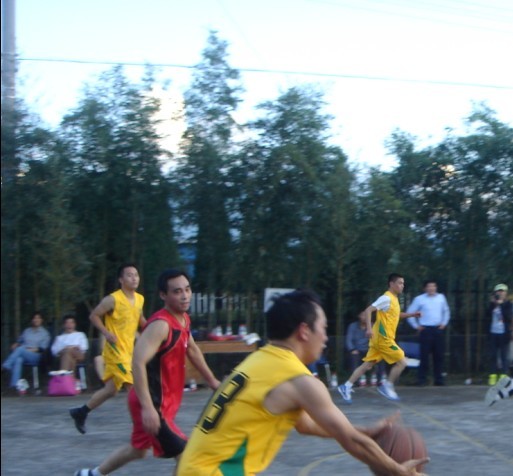 15:00時,由鎮(zhèn)政府書記帶領(lǐng)的籃球隊員準時來到良業(yè)公司的籃球場,15:30分在熱烈友好的氣氛中比賽開始了。