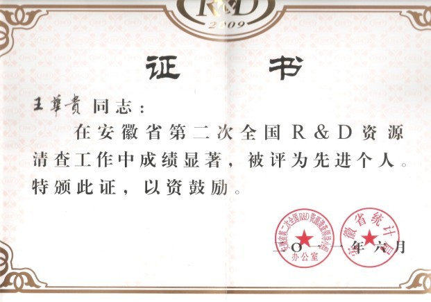 王華貴同志的扎實(shí)工作,得到了企業(yè)領(lǐng)導(dǎo)與統(tǒng)計(jì)工作主管領(lǐng)導(dǎo)部門的一致好評(píng),2007年度曾被中國通用機(jī)械工業(yè)協(xié)會(huì)閥門分會(huì)評(píng)為優(yōu)秀統(tǒng)計(jì)員,2011年在安徽省第二次全國r&d資源清查工作中由于表現(xiàn)突出,成績顯著,被該項(xiàng)清查小組和安徽省統(tǒng)計(jì)局評(píng)為“先進(jìn)個(gè)人”稱號(hào)。