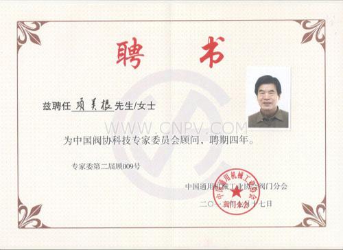 中國(guó)閥協(xié)科技再次聘任項(xiàng)美根為專家委員顧問(wèn)